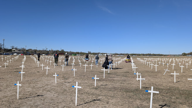 The memorial of crosses were set up on Dec. 14 in a field at Shelby Park — a park that that’s been partially closed to the public because it is the staging point for Operation Lone Star, Texas’ border security initiative in Eagle Pass.