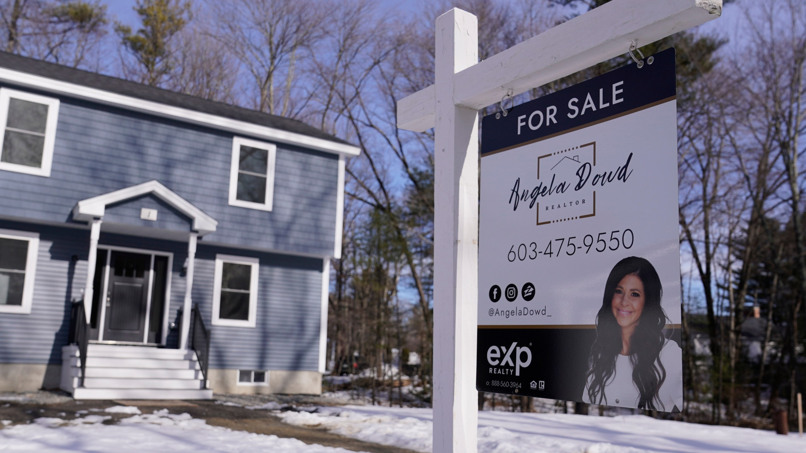 A “For Sale” sign is posted outside a single family home, Tuesday, Feb. 7, 2023, in Derry, N.H. On Tuesday, the National Association of Realtors reports on sales of existing homes in January. (AP Photo/Charles Krupa)