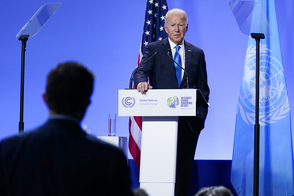 GLASGOW, Scotland (AP) — President Joe Biden argued Tuesday that historic progress on addressing global warming was achieved at the U.N. climate conference in Glasgow, Scotland, and expressed optimism for a similar outcome in Washington, where his legislative agenda has been stalled by intra-party disagreements.