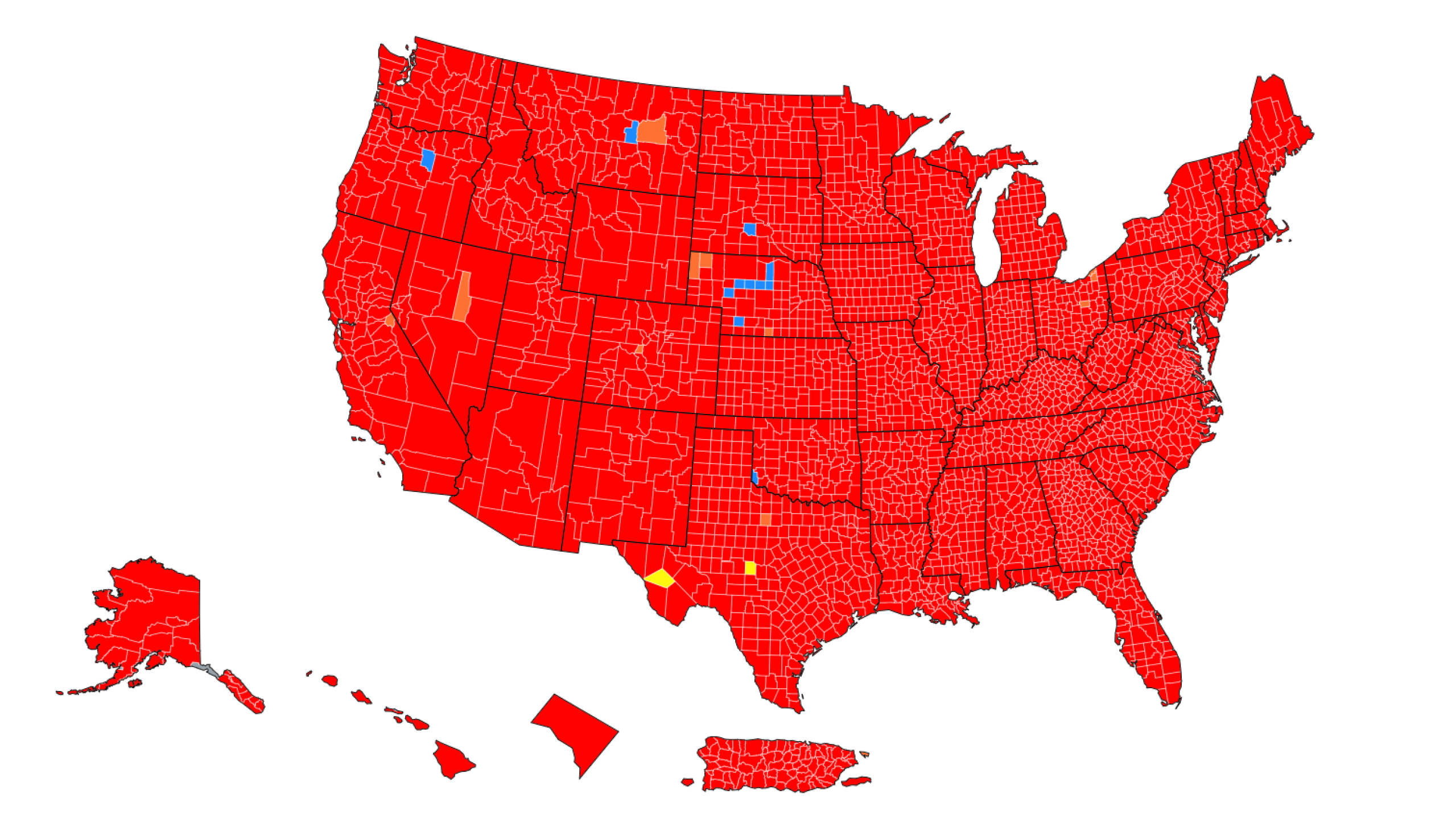 The two counties with “moderate” COVID transmission, according to the CDC, are both in Texas:
