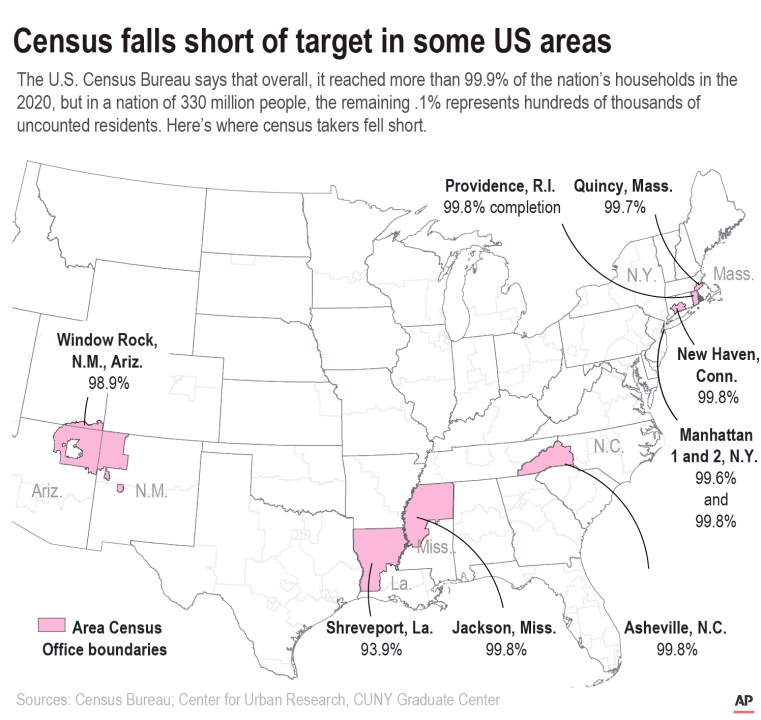 The U.S. Census Bureau says that overall, it reached more than 99.9% of the nation’s households, but in a nation of 330 million people, the remaining .1% represents hundreds of thousands of uncounted residents. And in small cities, even handfuls of undercounted residents can make a big difference in the resources the communities receive and the power they wield.