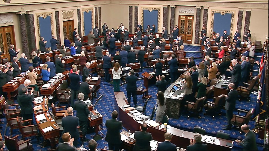 Senate Majority Leader Chuck Schumer called the vote at the end of the day’s impeachment proceedings, noting Goodman’s “foresight in the midst of chaos, and his willingness to make himself a target of the mob’s rage so that others might reach safety.”