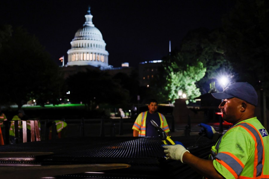 WASHINGTON (Reuters) —Workers installed a fence around the U.S. Capitol late on Wednesday ahead of a protest scheduled for Sept. 18, and police asked the National Guard to be ready to help with security if needed.