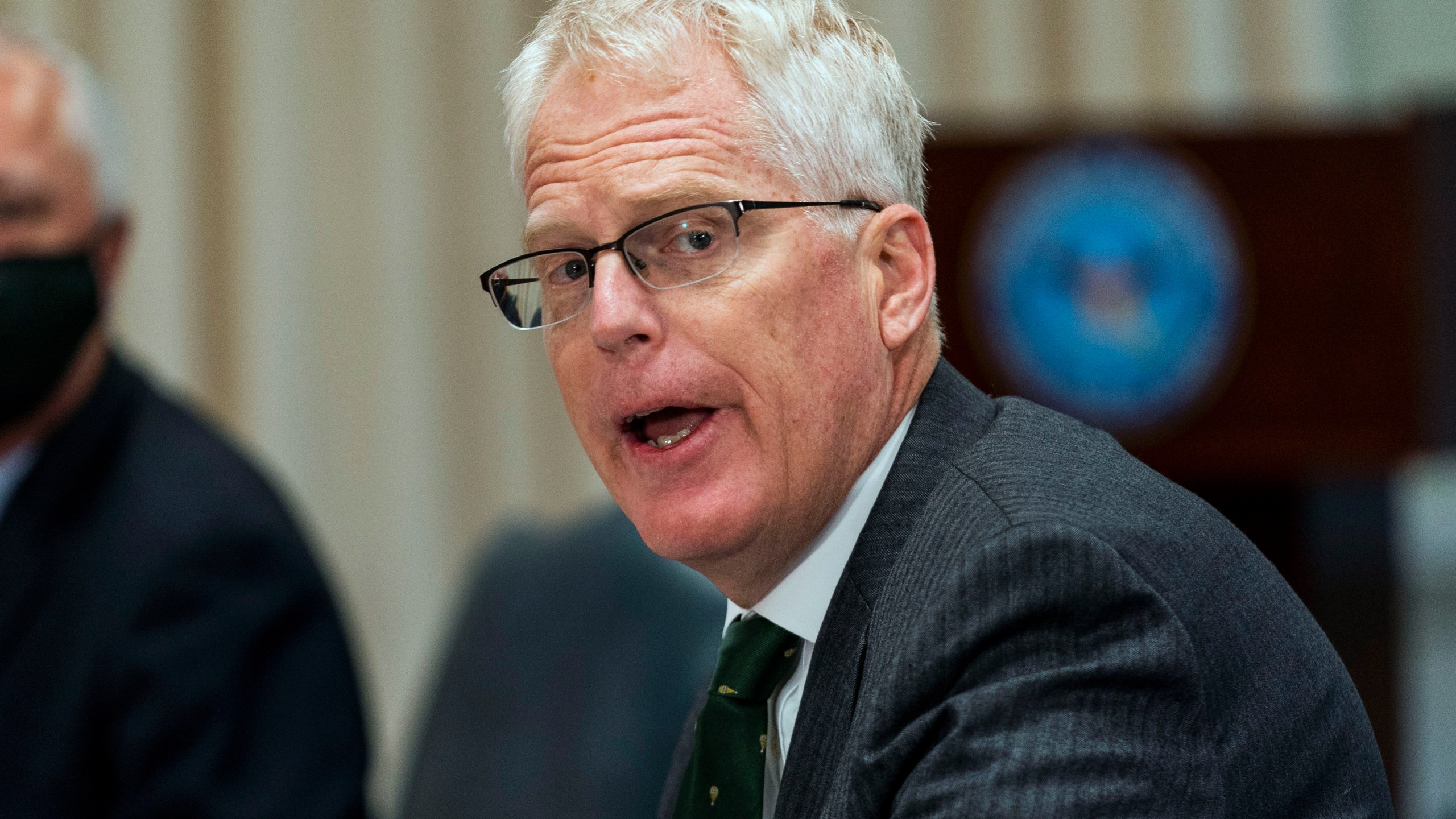 FILE – In this Nov. 13, 2020, file photo, then-acting Secretary of Defense Christopher Miller speaks during a meeting at the Pentagon. Miller, President Donald Trump’s acting defense secretary during the Jan. 6 Capitol riots plans to tell Congress that he was concerned in the days before the insurrection that sending troops to the building would fan fears of a military coup and could cause a repeat of the deadly Kent State shootings, according to a copy of prepared remarks obtained by The Associated Press. (AP Photo/Manuel Balce Ceneta, File)