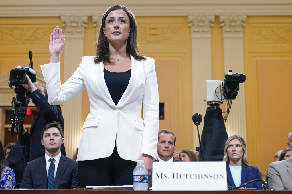 Hutchinson gave two hours of testimony on national television that cast former President Donald Trump as enraged by efforts to keep his armed supporters from attending his speech before many marched to the Capitol and her boss at the time, chief of staff Mark Meadows, as unwilling to confront Trump and staring at his cellphone during key moments.