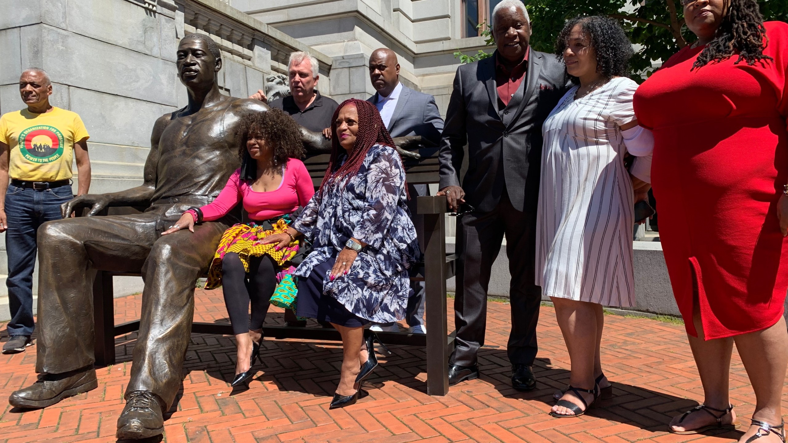 George Floyd statue weighing 700 pounds unveiled in New Jersey The City of Newark paid tribute to George Floyd on Wednesday, unveiling a 700-pound bronze statue in his honor outside City Hall. Video