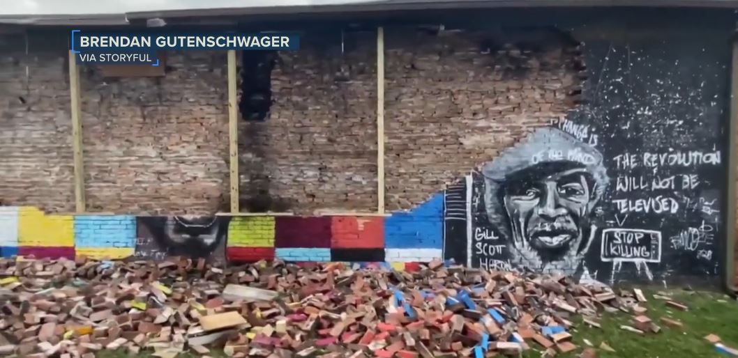 George Floyd mural destroyed after allegedly being struck by lightning A George Floyd memorial crumbled Tuesday after reportedly being struck by lightning. Video