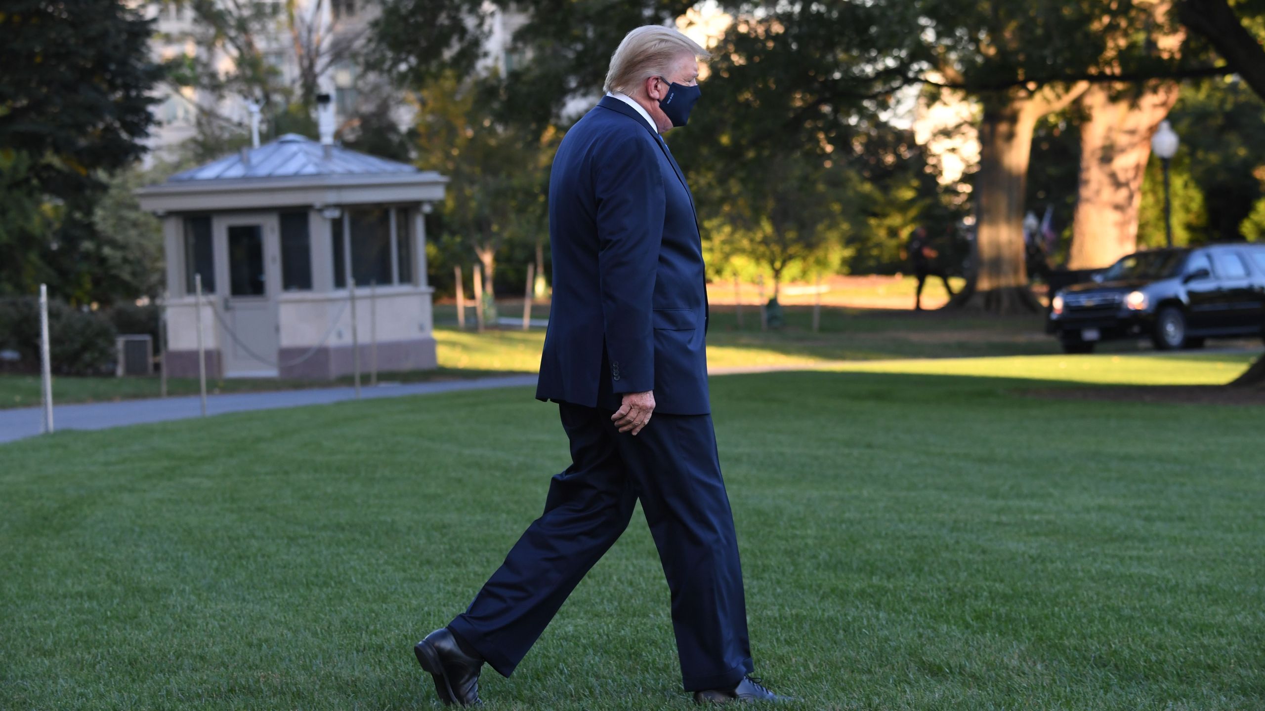 US President Donald Trump walks to Marine One prior to departure from the South Lawn of the White House in Washington, DC, October 2, 2020, as he heads to Walter Reed Military Medical Center, after testing positive for Covid-19. – President Donald Trump will spend the coming days in a military hospital just outside Washington to undergo treatment for the coronavirus, but will continue to work, the White House said Friday (Photo by SAUL LOEB / AFP) (Photo by SAUL LOEB/AFP via Getty Images)