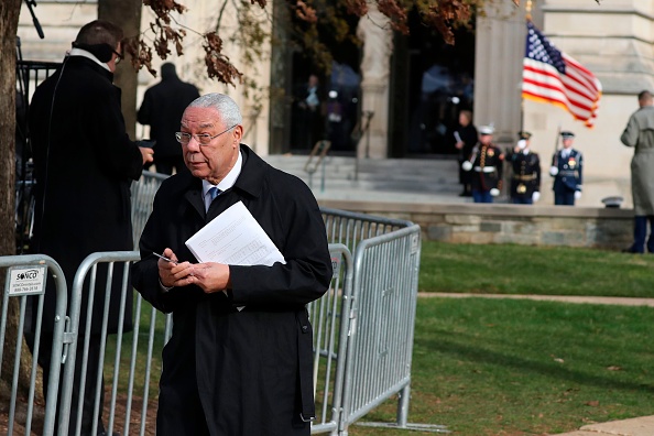 Former US Secretary of State Colin Powell leaves the National Cathedral at the close of the state funeral for former US President George H.W. Bush, December 5, 2018 in Washington, DC. (Photo by Alex Edelman / AFP) (Photo credit should read ALEX EDELMAN/AFP via Getty Images)