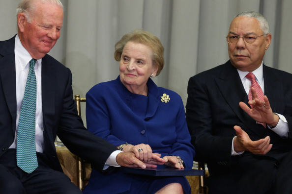 WASHINGTON, DC – SEPTEMBER 03: Former Secretaries of State (L-R) James Baker, Madeleine Albright and Colin Powell participate in the ceremonial groundbreaking for the future U.S. Diplomacy Center at the State Department’s Harry S. Truman Building September 3, 2014 in Washington, DC. When completed, the Diplomacy Center will be a museum and education center that will ‘demonstrate the ways in which diplomacy matters now and has mattered throughout American history.’ (Photo by Chip Somodevilla/Getty Images)