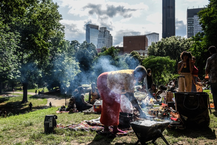 NEW YORK, NEW YORK – JUNE 18: A woman barbecues during a Juneteenth celebration in Fort Greene park on June 18, 2023 in the Brooklyn borough of New York City. Originating in Galveston, Texas on June 19, 1865, Juneteenth celebrates the announcement, about two months after the end of the Civil War, that Gordon Granger, a Union general, informed enslaved African Americans of their freedom and that the Civil War had ended. The holiday is also called “Juneteenth Independence Day,” “Freedom Day” or “Emancipation Day” and was made a federal holiday in 2021. (Photo by Stephanie Keith/Getty Images)
