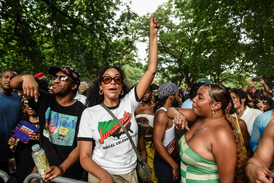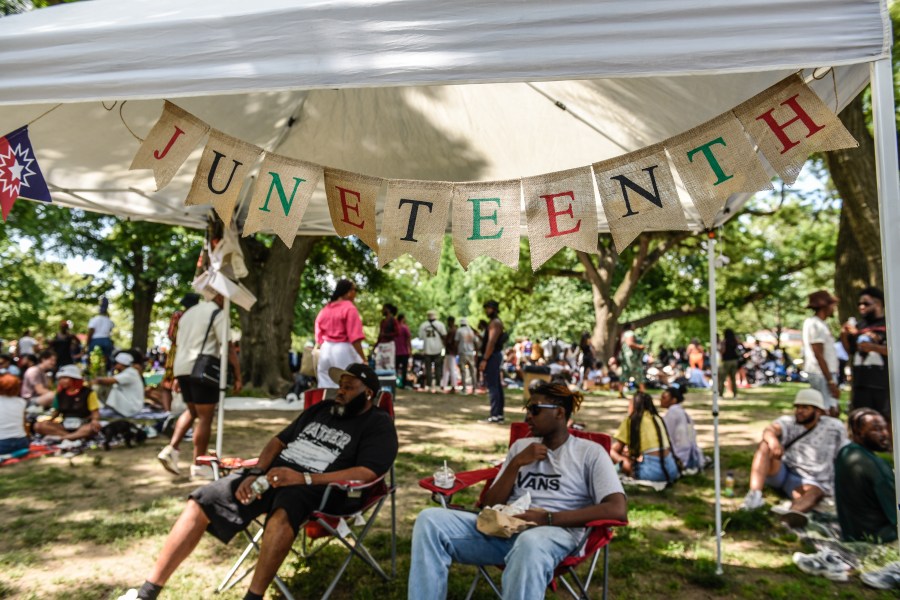NEW YORK, NEW YORK – JUNE 18: People participate in a Juneteenth celebration in Fort Greene park on June 18, 2023 in the Brooklyn borough of New York City. Originating in Galveston, Texas on June 19, 1865, Juneteenth celebrates the announcement, about two months after the end of the Civil War, that Gordon Granger, a Union general, informed enslaved African Americans of their freedom and that the Civil War had ended. The holiday is also called “Juneteenth Independence Day,” “Freedom Day” or “Emancipation Day” and was made a federal holiday in 2021. (Photo by Stephanie Keith/Getty Images)