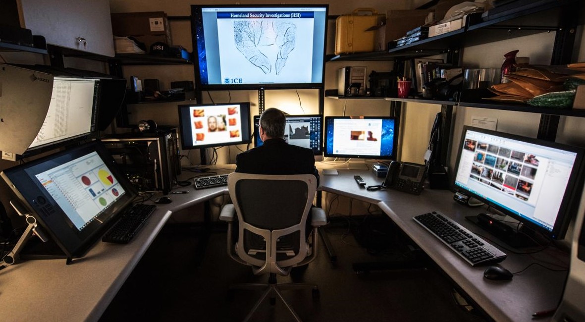An Immigration and Customs Enforcement agent monitors the internet for possible computer crimes.