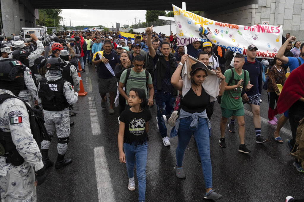 TAPACHULA, Mexico (AP) — Several thousand migrants set out walking in the rain early Monday in southern Mexico, tired of waiting to normalize their status in a region with little work and still far from their ultimate goal of reaching the United States.