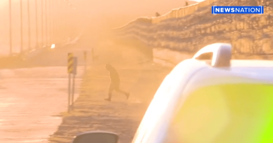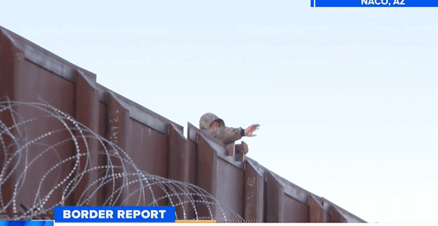 Bradley called out to a man on the fence asking if he was still sending migrants over the fence. The man waved to her no and confirmed that he was done sending them over the wall.