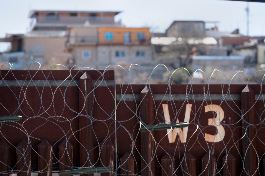 The barrier separating Nogales, Arizona, to the north and Nogales, Mexico, to the south is more elaborate than those in other crossing areas. Razor wire coiled along the top of the wall is meant to deter people from scaling the structure or tossing over goods. Added chicken wire between the fence’s iron beams prevents materials from being passed through the gaps, locals have said.