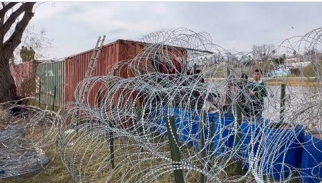 NewsNation cameras captured Texas officials on Wednesday installing new razor and anti-climb fences along Shelby Park, as well as atop shipping containers that migrants have often climbed to illegally enter the border.