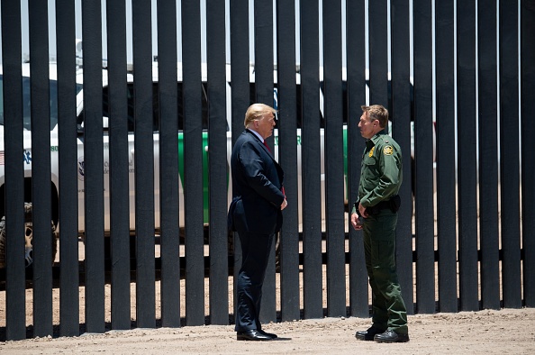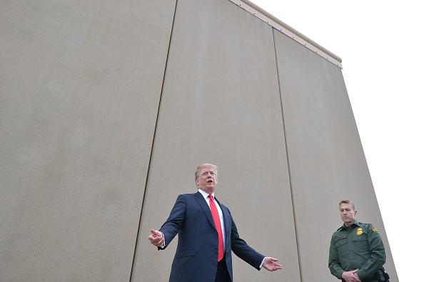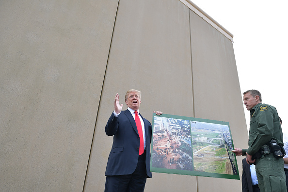 US President Donald Trump inspects border wall prototypes with Chief Patrol Agent Rodney S. Scott in San Diego, California on March 13, 2018. / AFP PHOTO / MANDEL NGAN (Photo credit should read MANDEL NGAN/AFP via Getty Images)