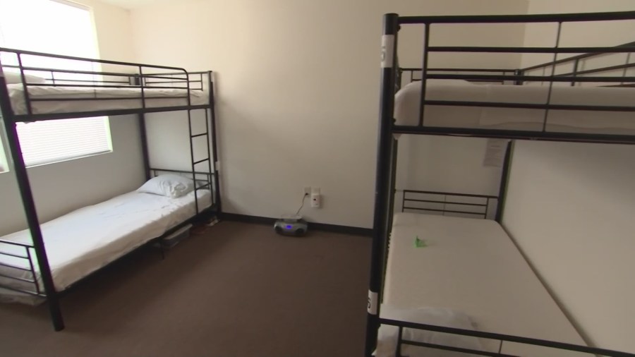 4 kids are housed in each bedroom. During the tour, an empty bedroom was showcased.