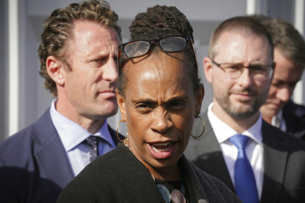 New York’s Deputy Mayor for Health and Human Services Anne Williams-Isom, center, speaks during a news conference at Randall’s Island Humanitarian Emergency Response and Relief Center, Oct. 18, 2022, in New York. (AP Photo/Bebeto Matthews)