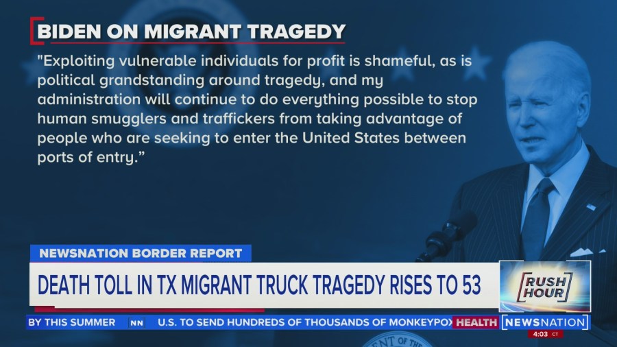 Biden, in a statement Tuesday, called the incident “horrifying and heartbreaking” and vowed to crack down on multibillion-dollar criminal smuggling enterprises that have helped fuel a record number of migrant crossings at the U.S.-Mexico border since he took office in January 2021.