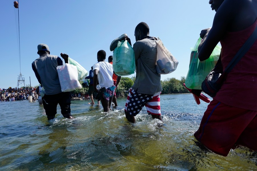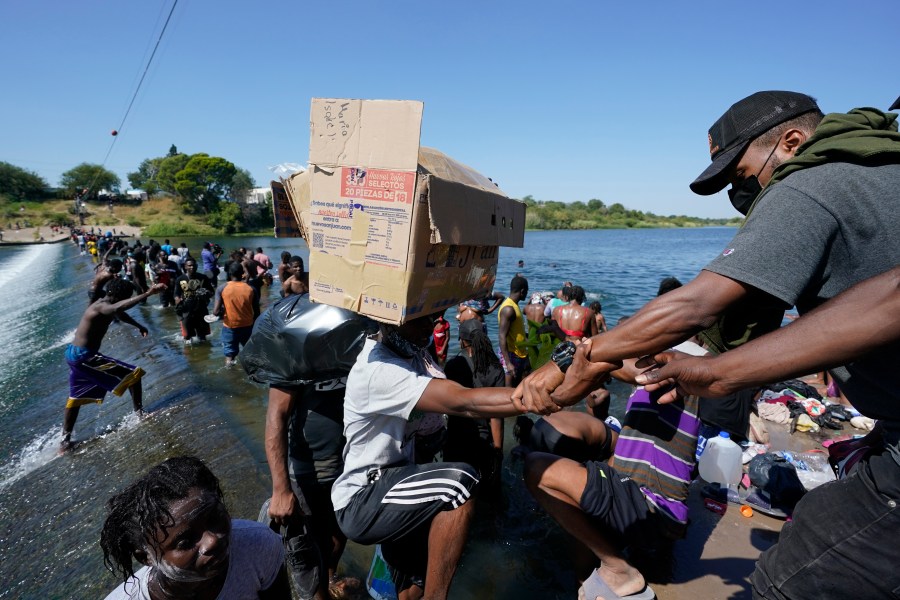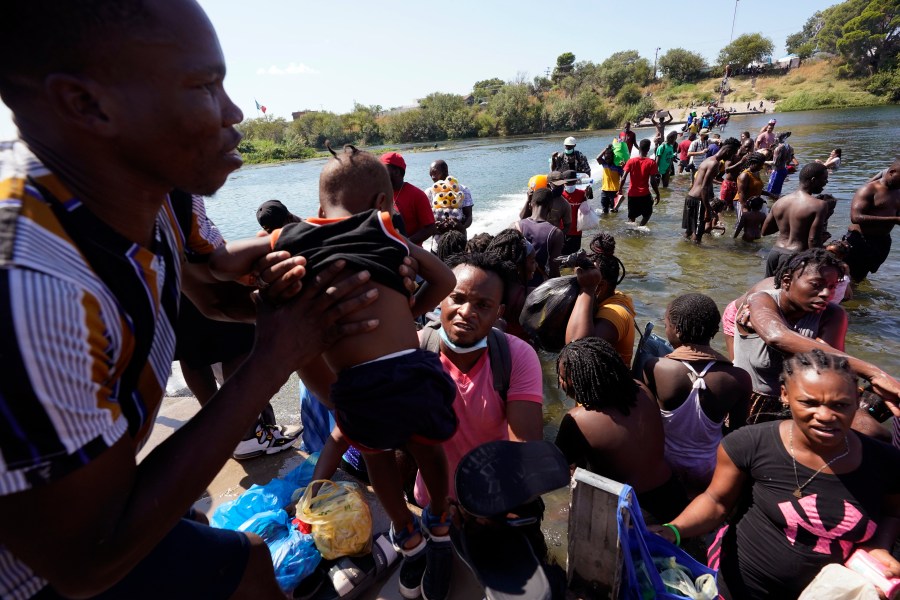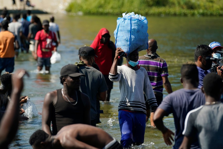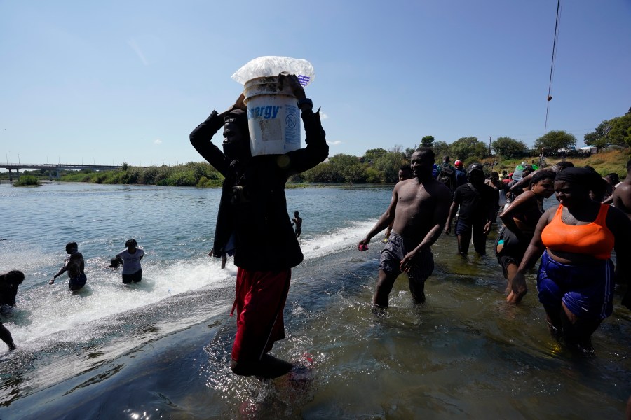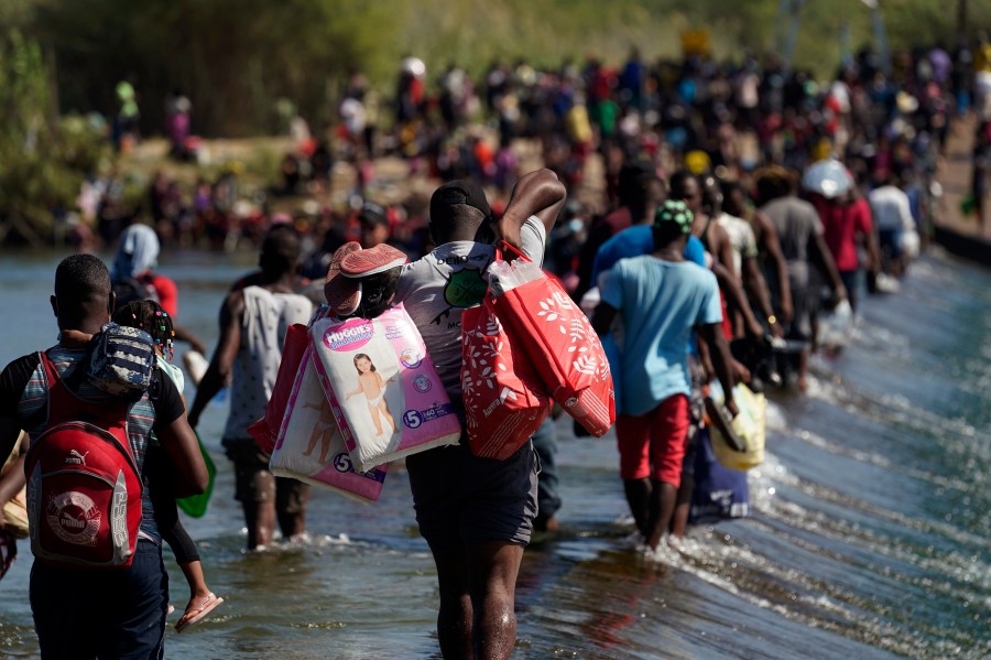 Haitians crossed the Rio Grande freely and in a steady stream, going back and forth between the U.S. and Mexico through knee-deep water with some parents carrying small children on their shoulders. Unable to buy supplies in the U.S., they returned briefly to Mexico for food and cardboard to settle, temporarily at least, under or near the bridge in Del Rio, a city of 35,000 that has been severely strained by migrant flows in recent months.