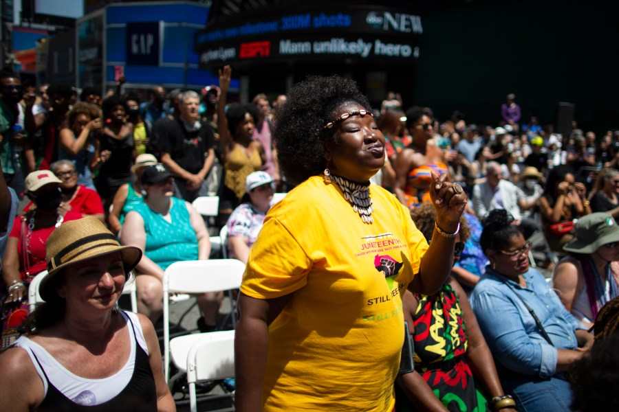In Galveston, the birthplace of the holiday, celebrations included the dedication of a 5,000-square-foot mural titled “Absolute Equality.” Opal Lee, 94, who was at Biden’s side when he signed the bill, returned to Fort Worth, Texas, to lead a 2.5-mile walk symbolizing the 2 1/2 years it took for slaves in Texas to find out they’d been freed.
