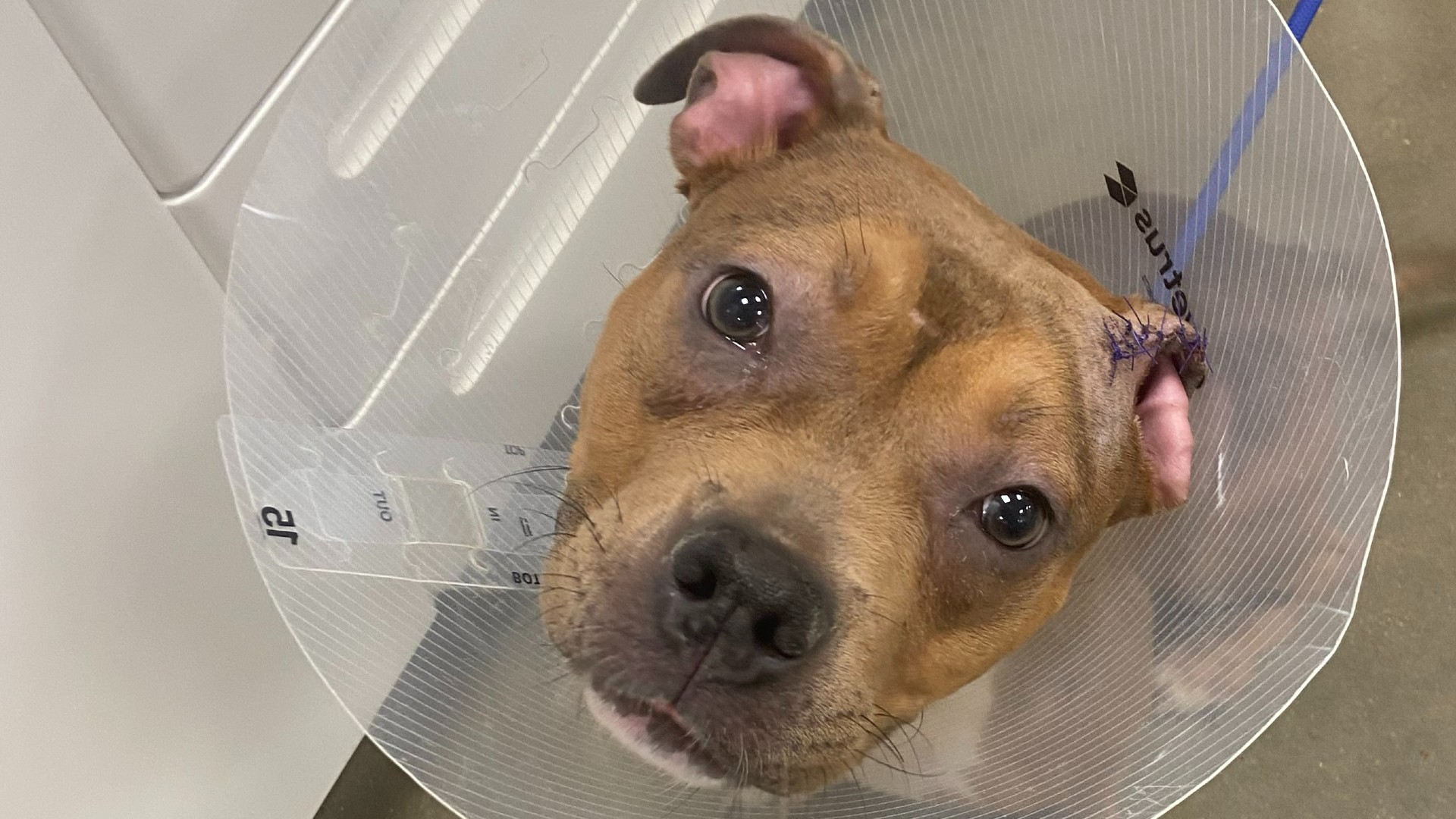 Brixie also needed 20 stitches to close the wound to her ear.