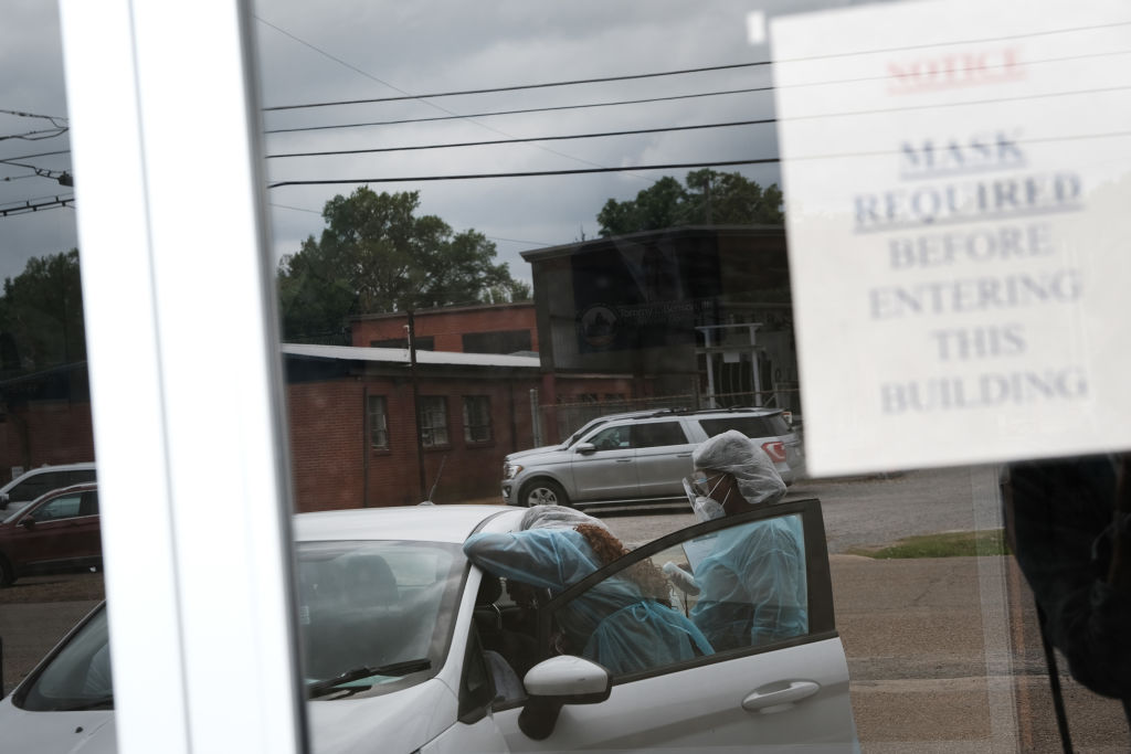 HOLLANDALE, MISSISSIPPI – APRIL 27: Medical workers with Delta Health Center vaccinate people at a pop-up Covid-19 vaccination clinic in this rural Delta community on April 27, 2021 in Hollandale, Mississippi. So far, an estimated 23 percent of Mississippians have been fully vaccinated against Covid-19 amid the state Department of Health reporting a total of 638 new cases and three deaths since last Friday. Mississippi, with its pockets of entrenched poverty, has been working to vaccinate residents in remote areas who may not have access to the internet or to transportation. (Photo by Spencer Platt/Getty Images)