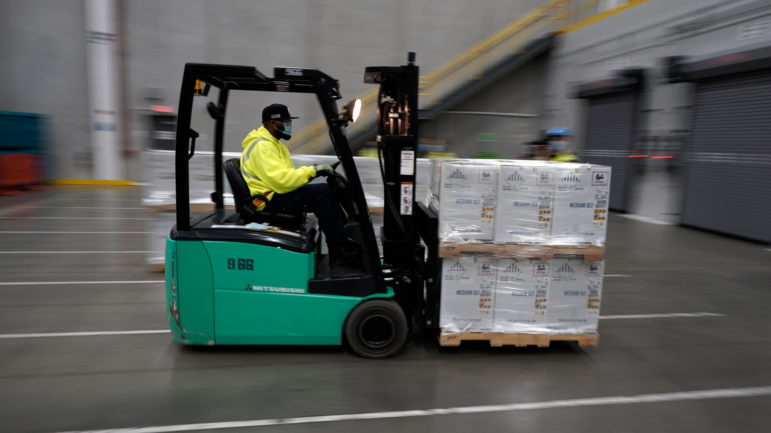 Workers at Pfizer’s Portage facility began packing doses of the coronavirus vaccine into dry ice containers around 6:45 a.m. Sunday. Cheers erupted as the last box was packed up.