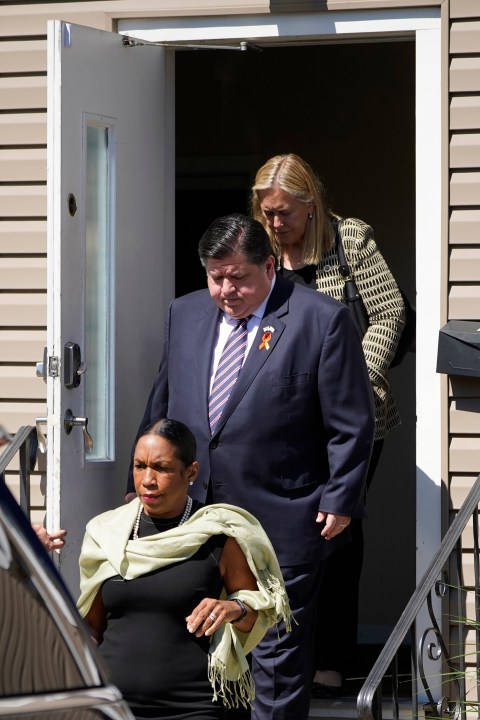 Among those who paid their respects Saturday were Gov. J.B. Pritzker, Lieutenant Gov. Juliana Stratton, Highland Park Mayor Nancy Rotering and Highland Park’s police chief, Lou Jogmen.