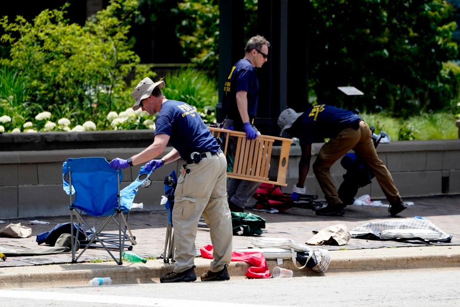 Earlier in the day, FBI agents peeked into trash cans and under picnic blankets as they searched for more evidence at the scene. The shots were initially mistaken for fireworks before hundreds of revelers fled in terror.