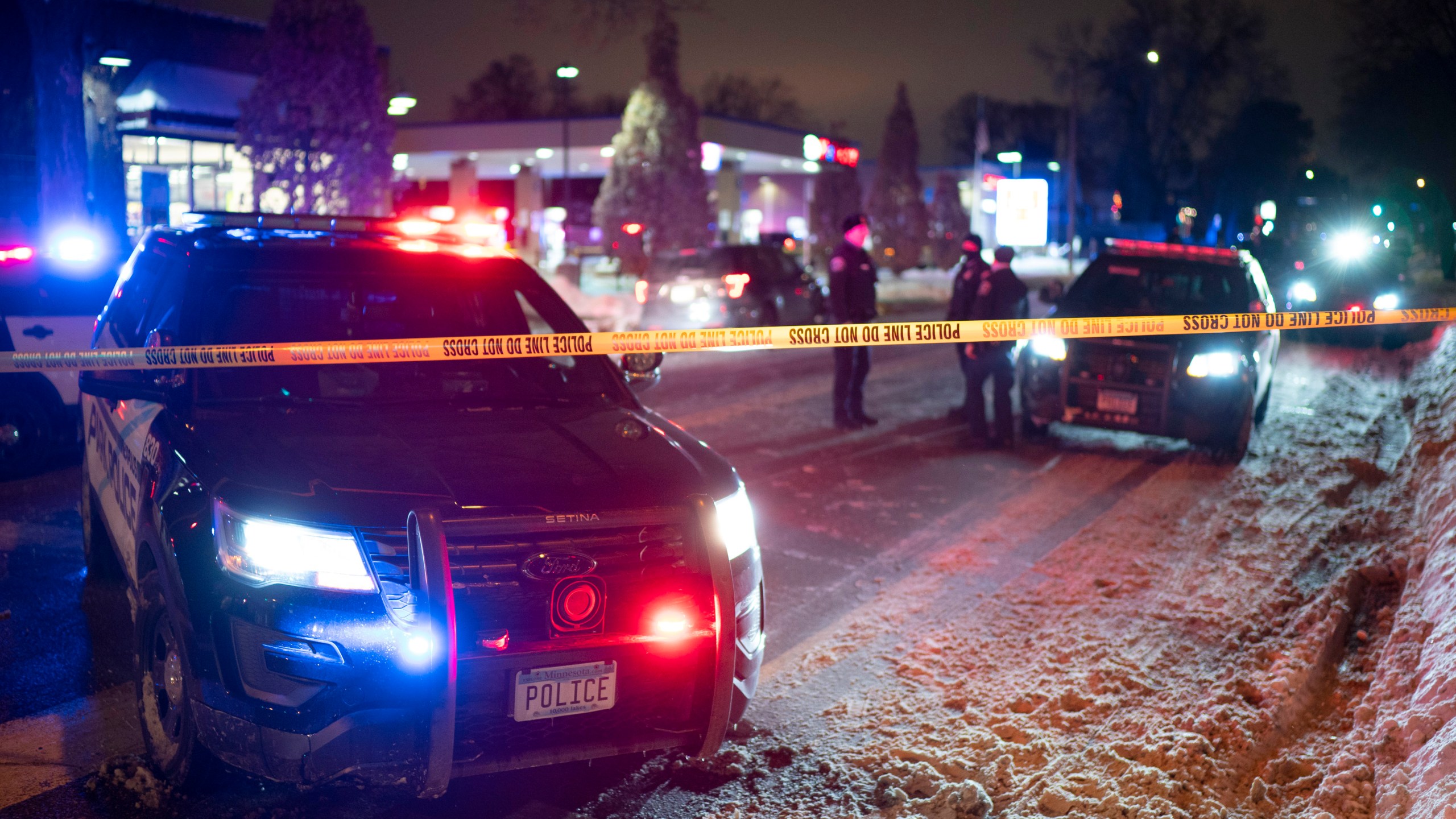 The scene at 36th St. and Cedar Ave. S. after a man was shot and killed by Minneapolis Police Wednesday, Dec. 30, 2020, in Minneapolis. Police in Minneapolis shot and killed a man during a traffic stop on the city’s south side Wednesday night. Department spokesman John Elder said the incident happened about 6:15 p.m. while officers were carrying out a traffic stop with a man suspected of a felony. (Jeff Wheeler/Star Tribune via AP)