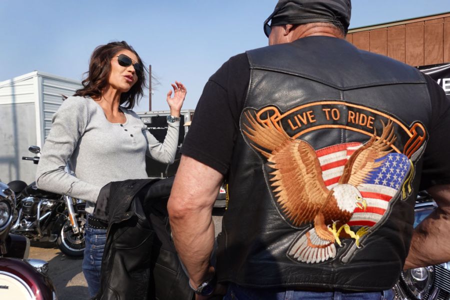 STURGIS, SOUTH DAKOTA – AUGUST 09: Motorcycle enthusiasts attend the 81st annual Sturgis Motorcycle Rally on August 09, 2021 in Sturgis, South Dakota. The rally is expect to draw more than 500,00 people during its 10-day run. (Photo by Scott Olson/Getty Images)