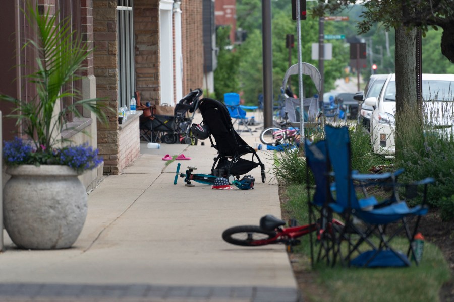HIGHLAND PARK, Ill. (NewsNation) — Tuesday morning’s scene was a chilling memorial: tipped-over lawn chairs, abandoned bikes and empty strollers adorned with American flags.