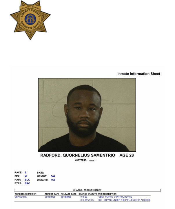 According to NewsNation affiliate WSAV, Radford has been transported to Liberty County Jail.