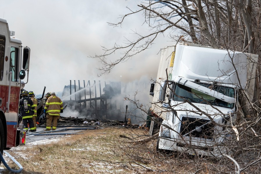 Pennsylvania State Police Trooper David Beohm said Monday afternoon that police hadn’t been able to investigate yet because a fire was still burning among a number of crashed cars and trucks.