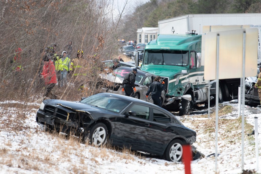 The Schuylkill County Office of Emergency Management said the crash in northeast Pennsylvania happened around 10:30 a.m. Monday. John Blickley, the agency’s deputy emergency management coordinator, said officials believe a snow squall clouded visibility and likely contributed to the accident.