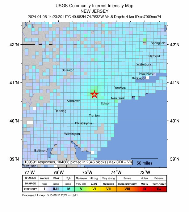 “Our region just experienced an earthquake with a preliminary magnitude of 4.7, with an epicenter near Readington in Hunterdon County. We have activated our State Emergency Operations Center. Please do not call 911 unless you have an actual emergency,” he said on X, formerly known as Twitter.
