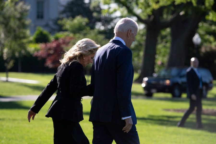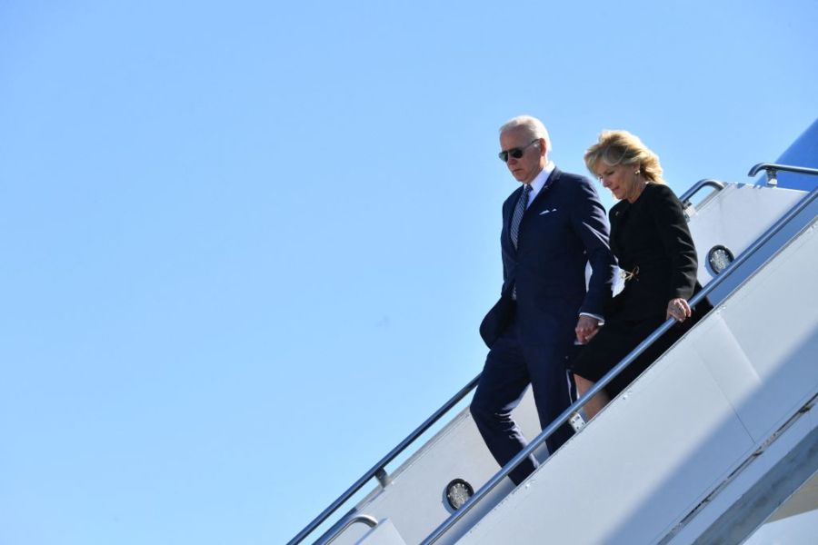 The president and first lady Jill Biden’s first stop Tuesday was a makeshift memorial outside the supermarket. The first couple laid a bouquet of white flowers at the memorial of blossoms, candles and messages of condolence outside the supermarket.