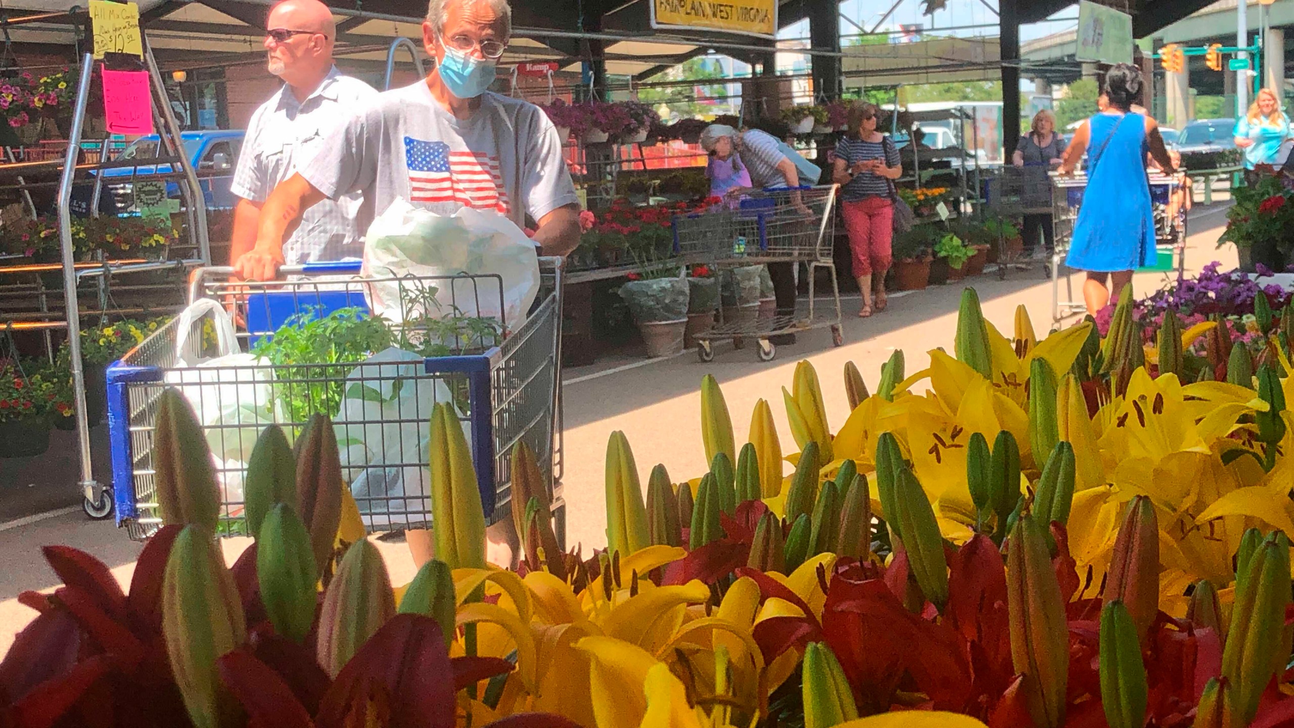 Shoppers look through offerings of flowers and vegetable plants Friday, May 22, 2021, at the Capitol Market in Charleston, W.Va. West Virginia has seen a higher percentage of residents depart than any other state in the past decade. (AP Photo/John Raby)