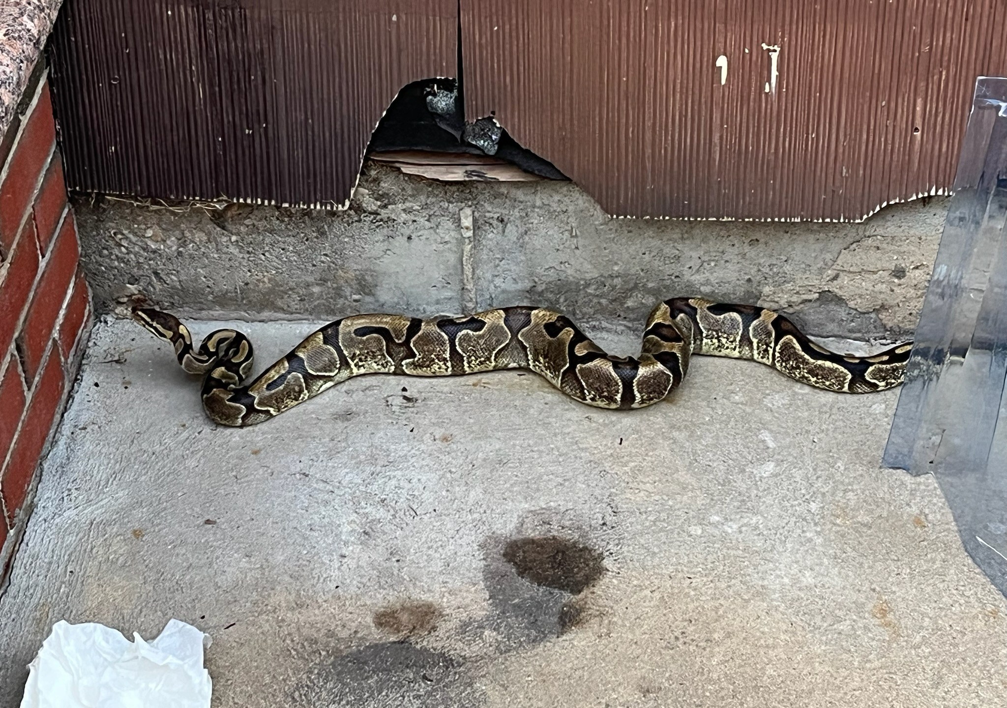Experts later determined the snake was a ball python, which are non-venomous snakes that are often kept as pets. It was not immediately clear whether the snake was a pet that escaped or may have been abandoned.