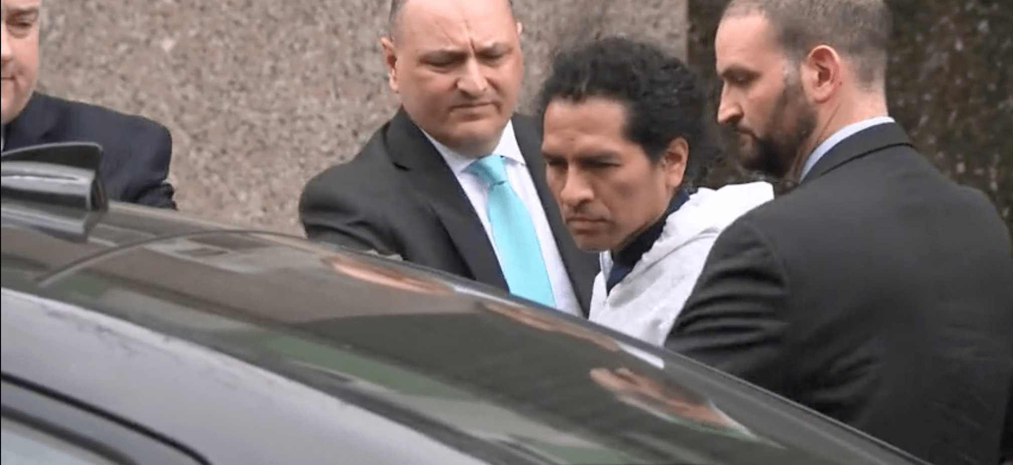 David Bonola, suspect in a Queens mom’s death, during his perp walk on April 21, 2022. (NewsNation)