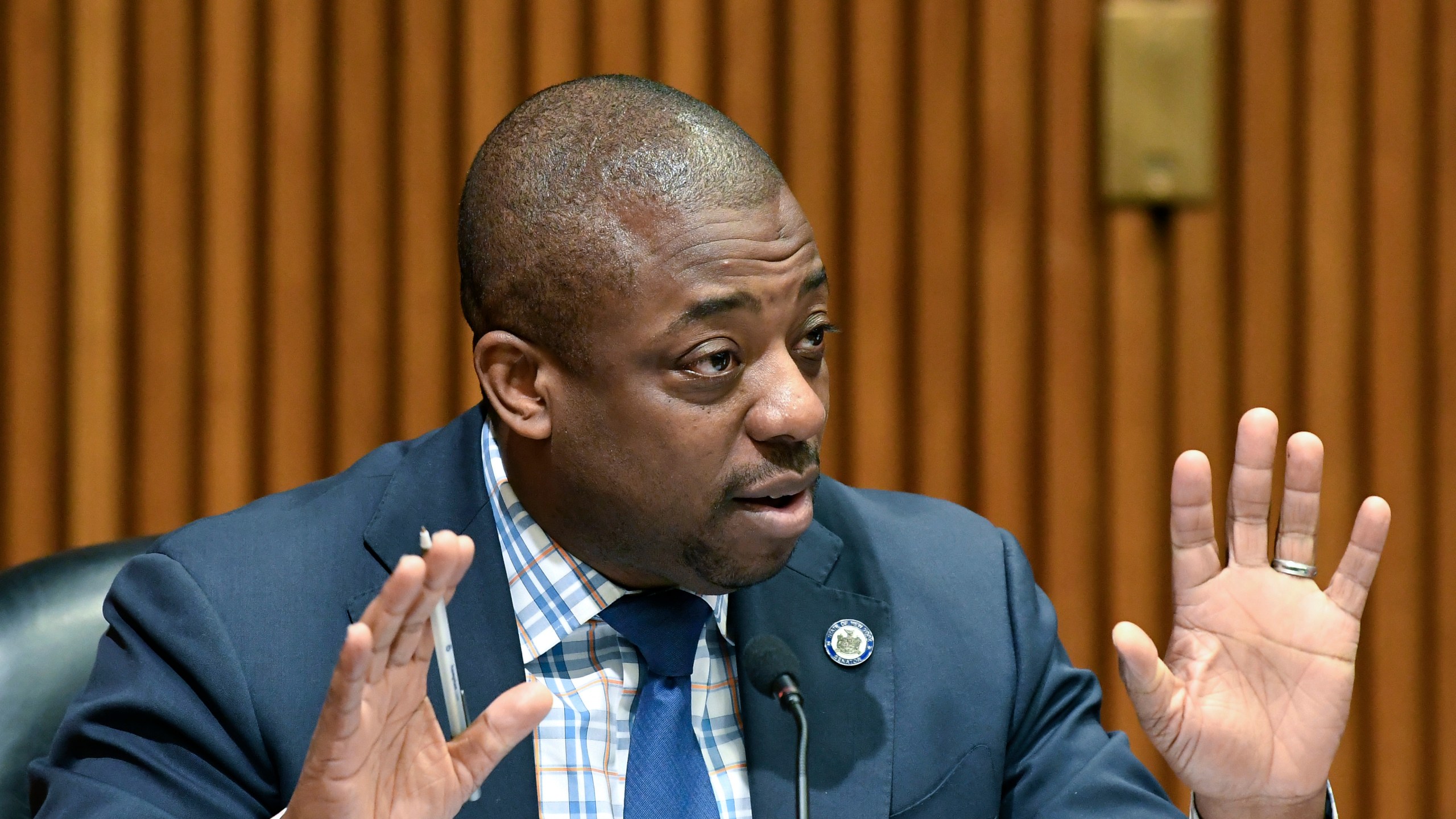 File: Sen. Brian A. Benjamin, D-New York questions New York City Mayor Bill de Blasio during a joint legislative budget hearing on local government Monday, Feb. 11, 2019, in Albany, N.Y. (AP Photo/Hans Pennink)