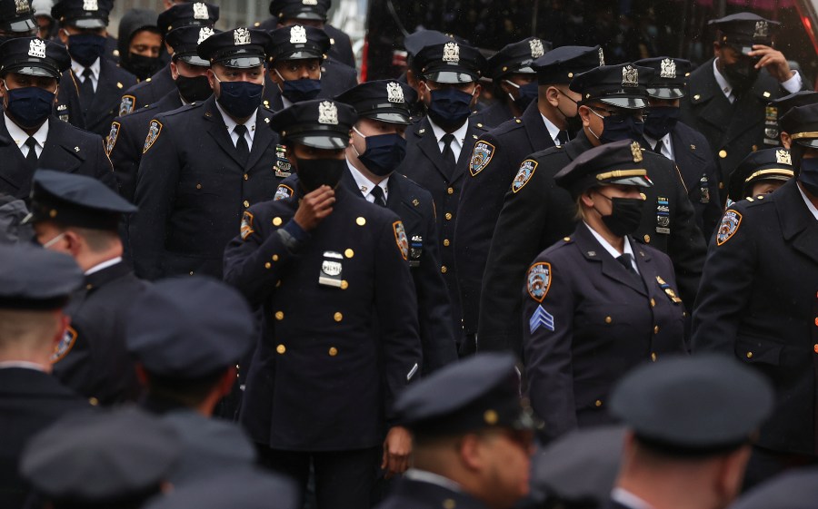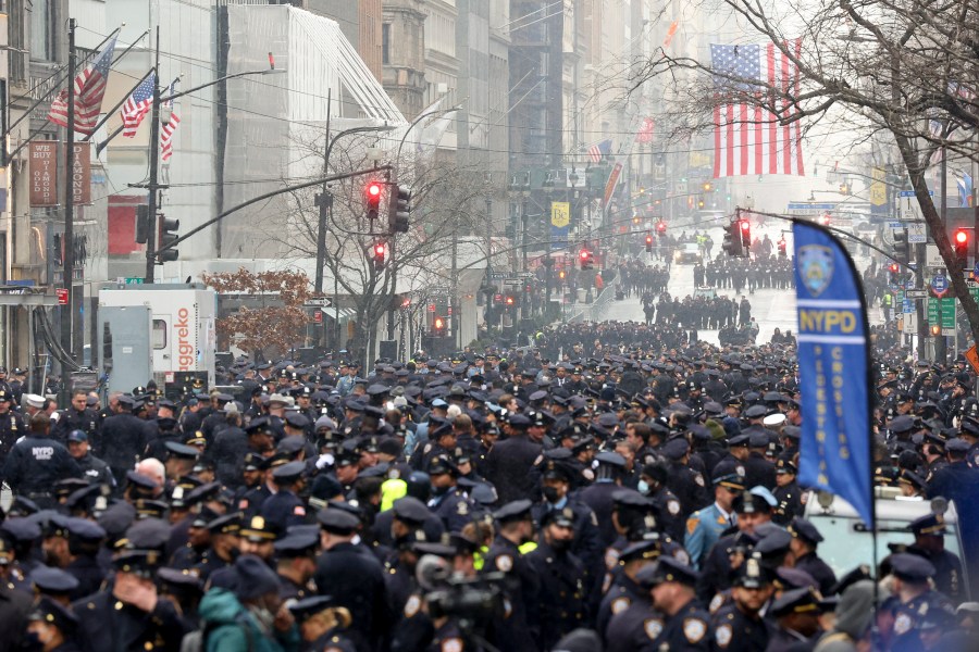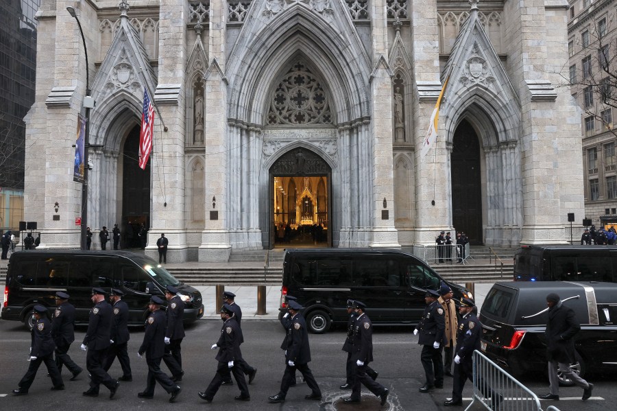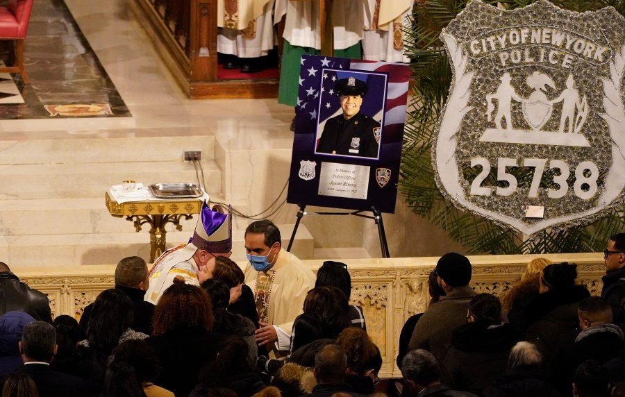 NEW YORK (AP) — Thousands of police officers lined the pews Friday at St. Patrick’s Cathedral to honor fallen Officer Jason Rivera, who was gunned down with his partner last week in an ambush that left the New York Police Department in mourning and the city on edge.