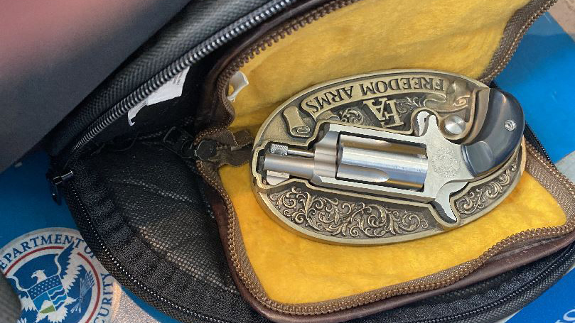 Officers at the Terminal C checkpoint discovered the item tucked inside two separate zippered cases following an X-ray of the passenger’s bag on June 11. TSA officers initially thought the item to be a “large belt buckle with a replica gun on it,” but found it to be “an actual real firearm that could pop out of its decorative metallic oval frame,” according to a news release.