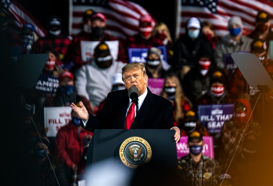 US President Donald Trump speaks during a campaign rally at Duluth International Airport in Duluth, Minnesota on September 30, 2020. (Photo by MANDEL NGAN/AFP via Getty Images)