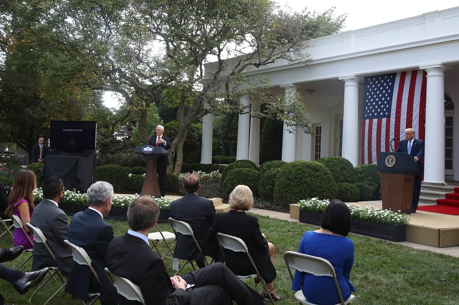 U.S. President Donald Trump delivers an update on the nations coronavirus testing strategy in the Rose Garden of the White House on September 28, 2020 in Washington, DC. (Photo by Tasos Katopodis/Getty Images)