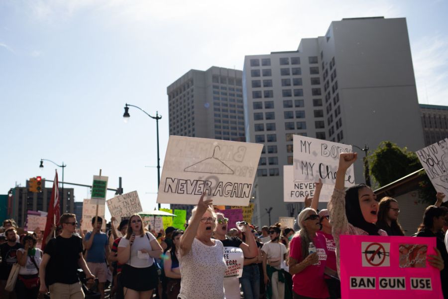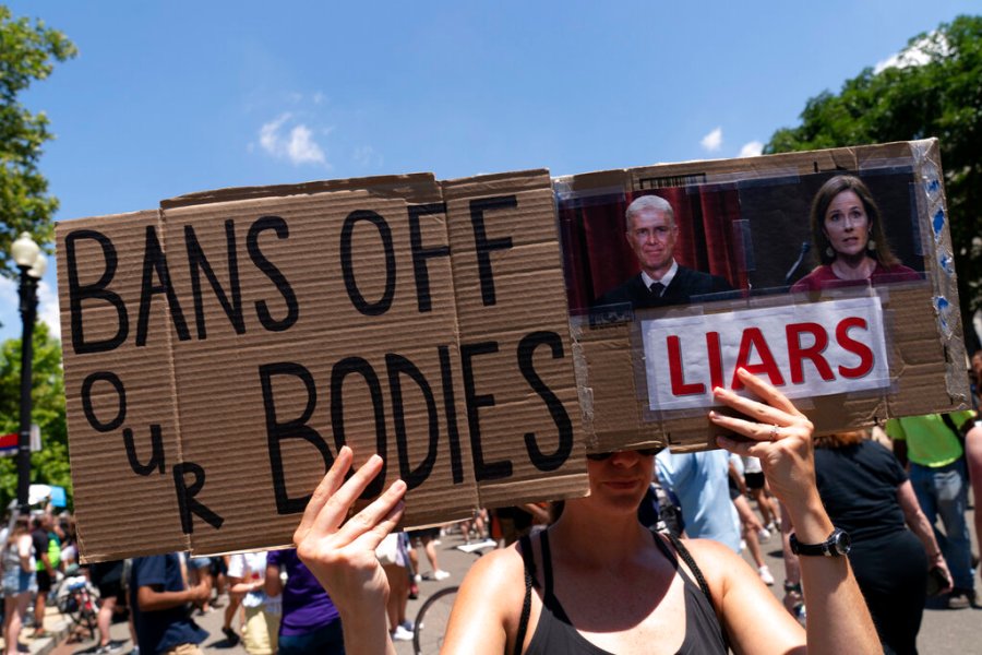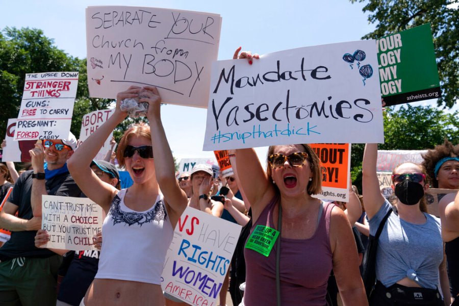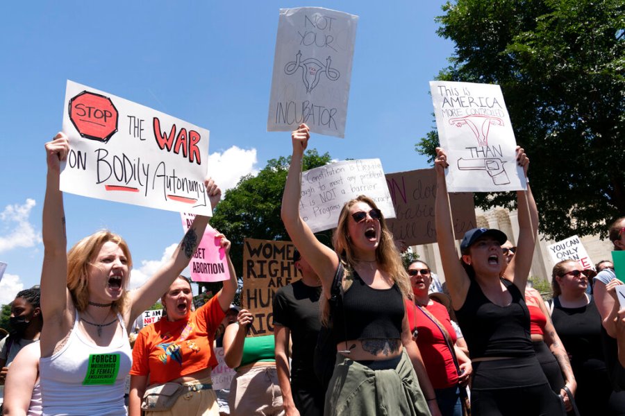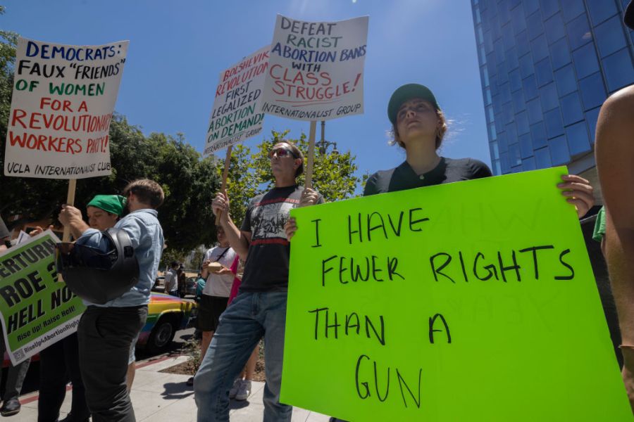 Marchers gathered near LA City Hall starting around 10 a.m. carrying signs that said, “my body, my choice” and “abort the court.” A concert and rally called “Rock for Abortion Rights” was scheduled for the afternoon outside a nearby U.S. courthouse.
