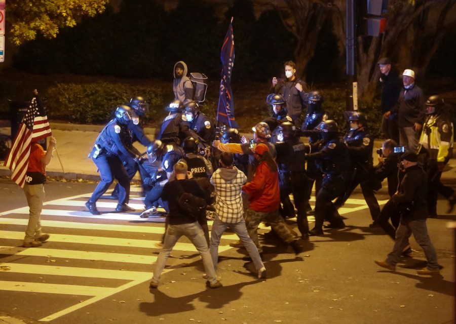 WASHINGTON (NewsNation Now) — Several thousand supporters of President Donald Trump in Washington protested election results Saturday afternoon before nighttime clashes with counter demonstrators sparked fistfights, at least one stabbing and at least 21 arrests.